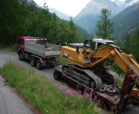 Schwertransport für Forstdienst Saastal